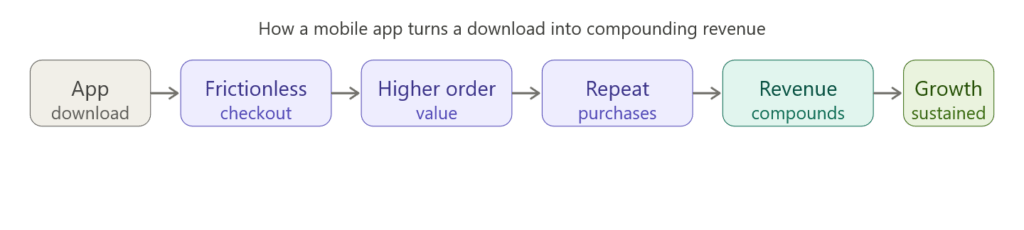 Retention tells the same story. Customers who engage through an app return more often, spend more per visit, and cost less to keep. Mobile commerce data confirms this trend is accelerating, not slowing down.