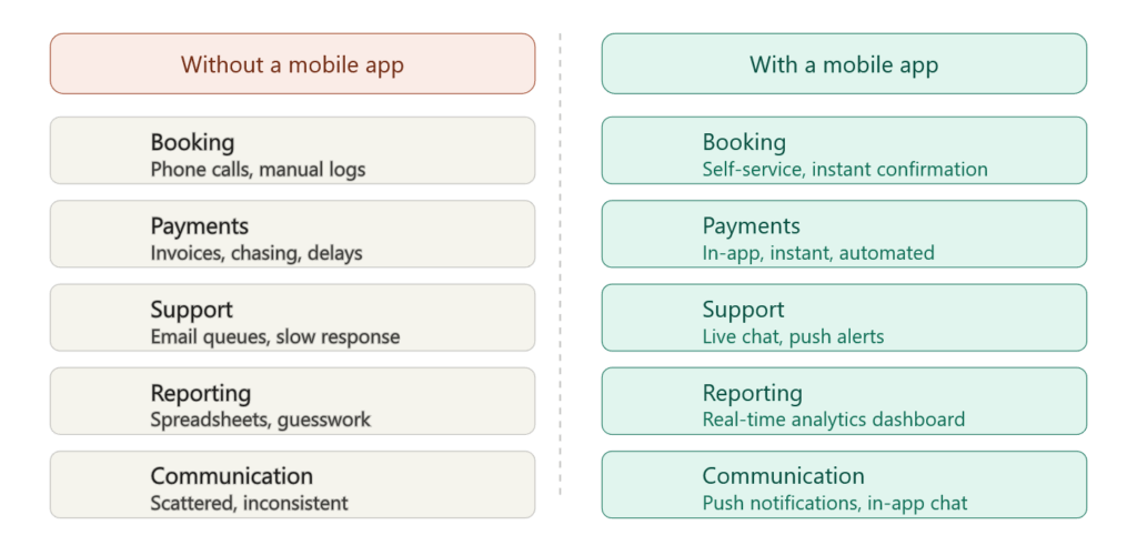 If your team manages bookings, payments, or customer communication across multiple platforms, an app consolidates everything. The inefficiency you are tolerating has a real cost.